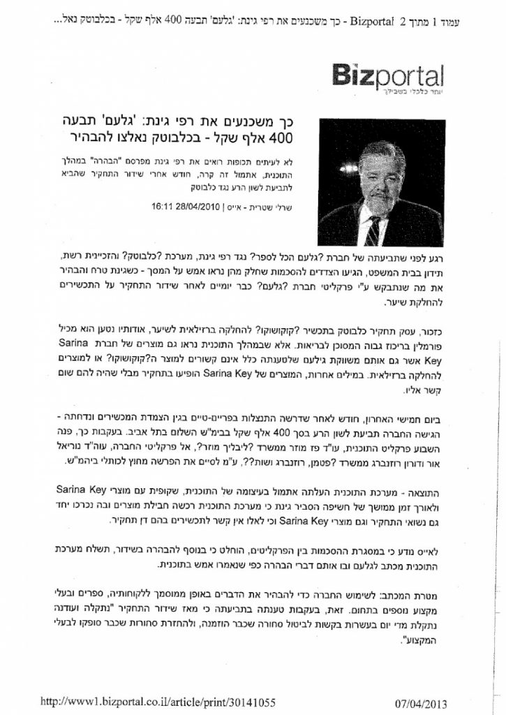 תביעת לשון הרע כנגד רפי גינת, התכנית "כלבוטק" ו"רשת" גרמה לרפי גינת לפרסם הבהרה בתכנית.